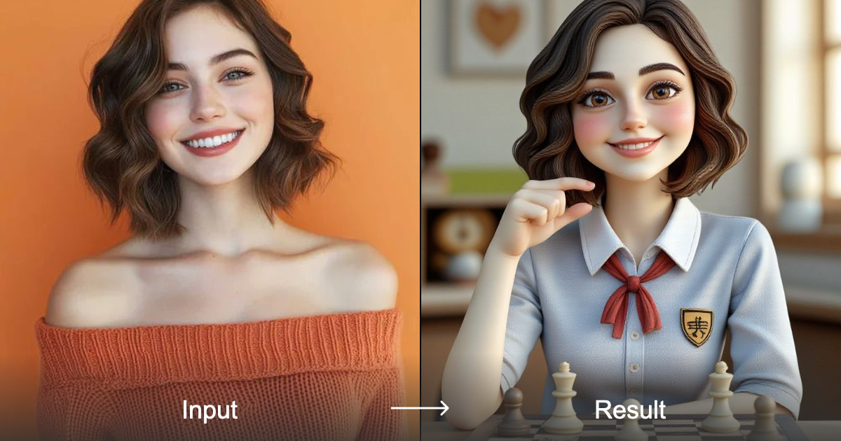 محوّل نمط الشطرنج في a1.art يُنتج صورًا فريدة وجذابة بصريًا لأشخاص يلعبون الشطرنج، بنسقين هما النسق الأنيق والنسق اللطيف، مع تأثير ثلاثي الأبعاد. وتظهر الصور أفرادًا في بيئة مدرسية دولية ويرتدون زي المدرسة الرسمي، ويكون الخلفية داخل فصل دراسي ومنير بشدة.