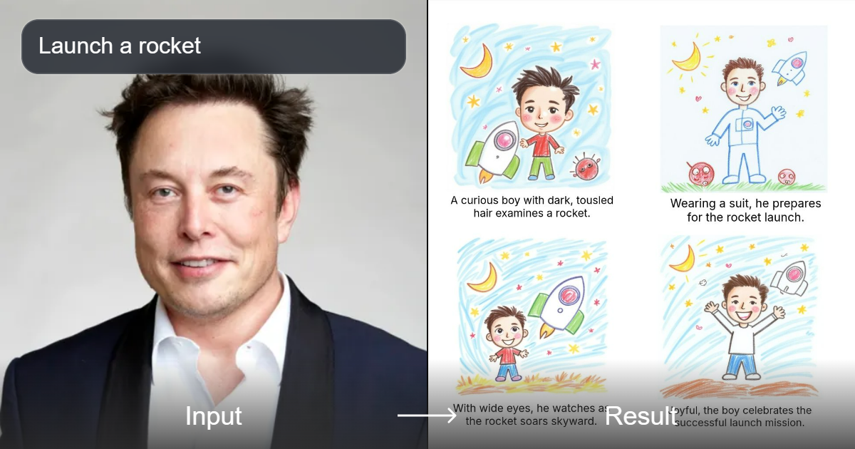 مُولِّد رسامٍ رقمي محترف يُنشئ صوراً متحركة مكونة من أربع لوحات تجذب الانتباه لمحتوى الأطفال. فني ومرح، ومثالي للقصص والترفيه.