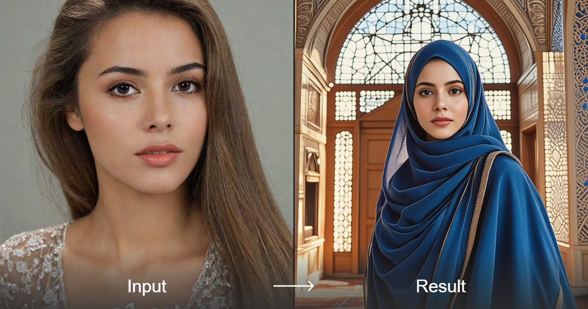 إنشاء صور واقعية بأسلوب البورتريه مع عناصر فنية وتصويرية، باستخدام جماليات الكاميرا الفورية (بولاويد)، للاحتفالات الإسلامية بعيد الفطر.