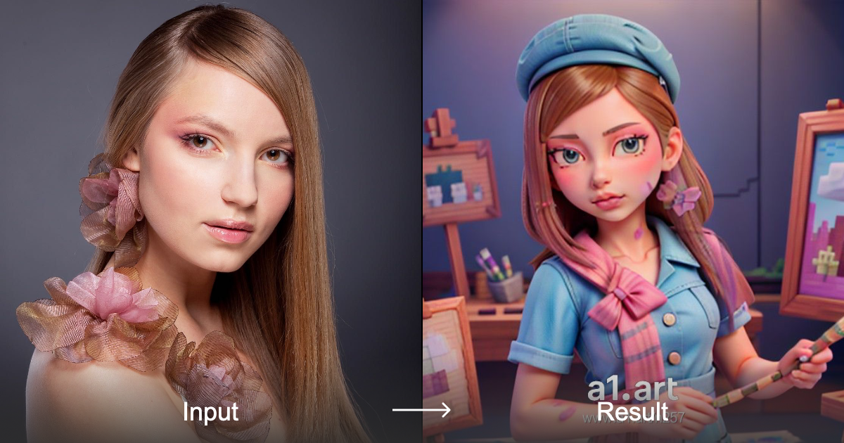 قم بتحويل صورتك بسهولة إلى نمط كرتوني ممتع وحيوي باستخدام a1.art. استمتع بإطلالة فنية فورية بنقرات قليلة.