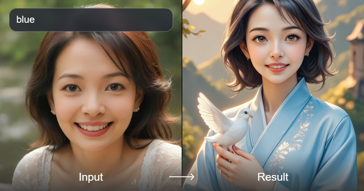 Transform your ideas into breathtakingly realistic 2.5D fantasy world images with A1.Art's 幸福之鴿 style converter.