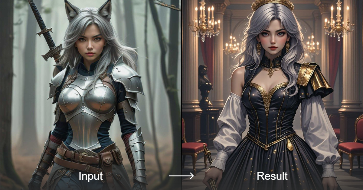 استخدم a1.art لتحويل زي المحارب إلى أزياء ملكية مذهلة. حقق تغييرًا دراماتيكيًا في الأسلوب في ثوانٍ.