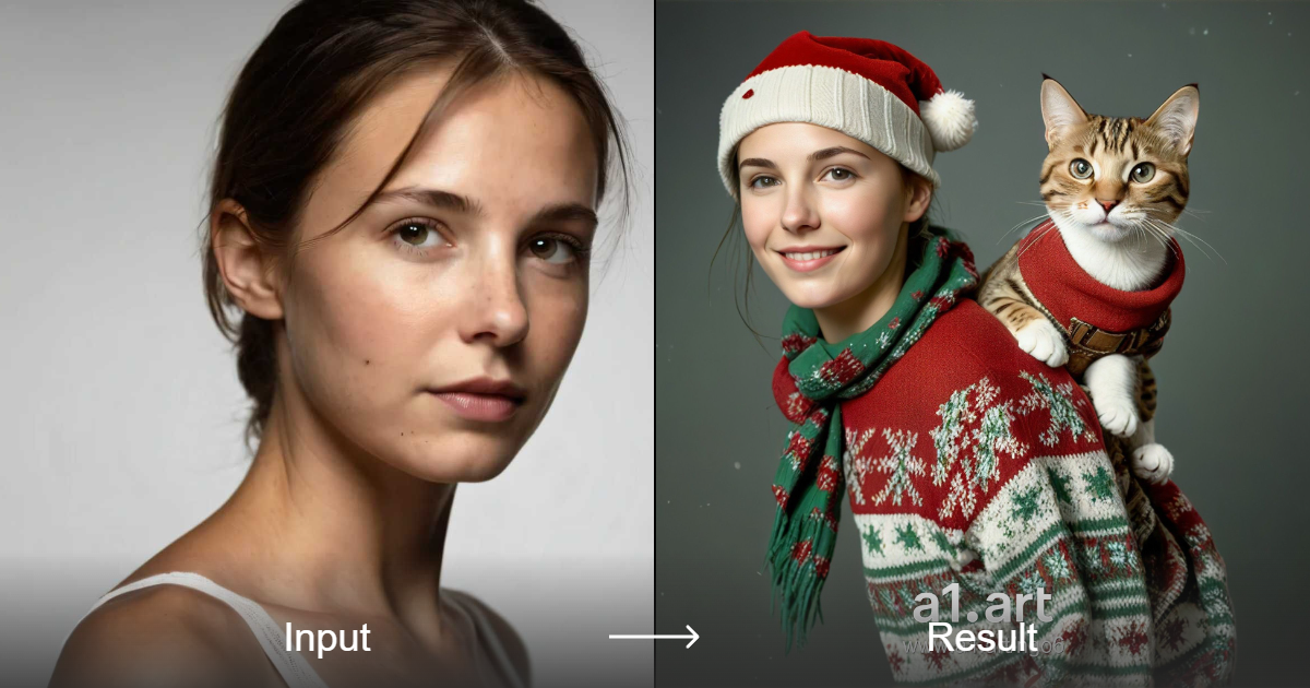حوّل صورتك إلى أسلوب احتفالي مميز مع قطة لطيفة. احتفل بالموسم بطريقة إبداعية باستخدام a1.art.