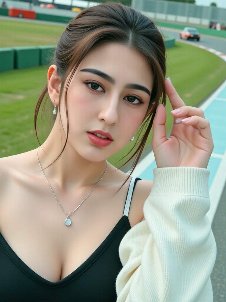 أنشئ صورًا مذهلة وواقعية لفتيات محطة الفن ذات طابع سباقات باستخدام محول النمط المدعوم بالذكاء الاصطناعي، ويتميز بطول الساقين وملابس السباحة الأنيقة وخلفيات السيارات الرياضية الديناميكية.