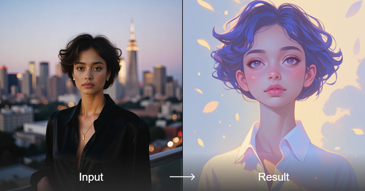 حوّل أفكارك إلى فن رقمي حيوي وساحر وحالم باستخدام محول الأنماط الخاص بنا بأسلوب 2.5D والرسوم المتحركة والقصص المصورة والفانتازيا.