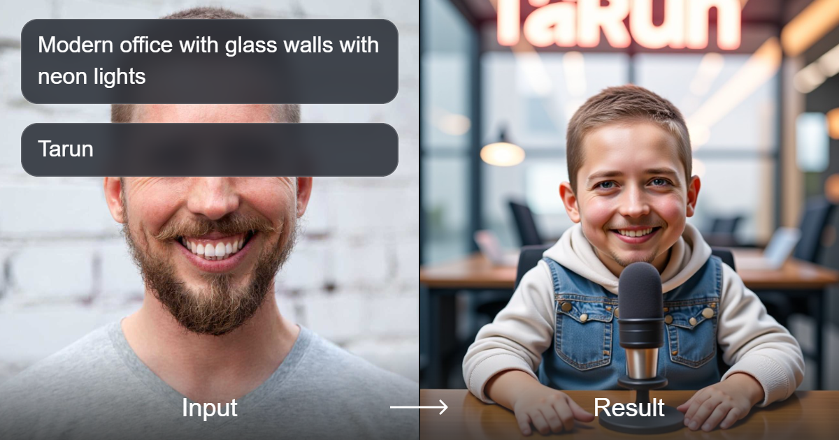 قم بتحويل أي صورة إلى نسخة واقعية من طفل رضيع بنسب صحيحة، مع الحفاظ على نفس الملابس والتسريحة وميزات الوجه، وإضافة إعداد بودكاست وخلفية مخصصة.