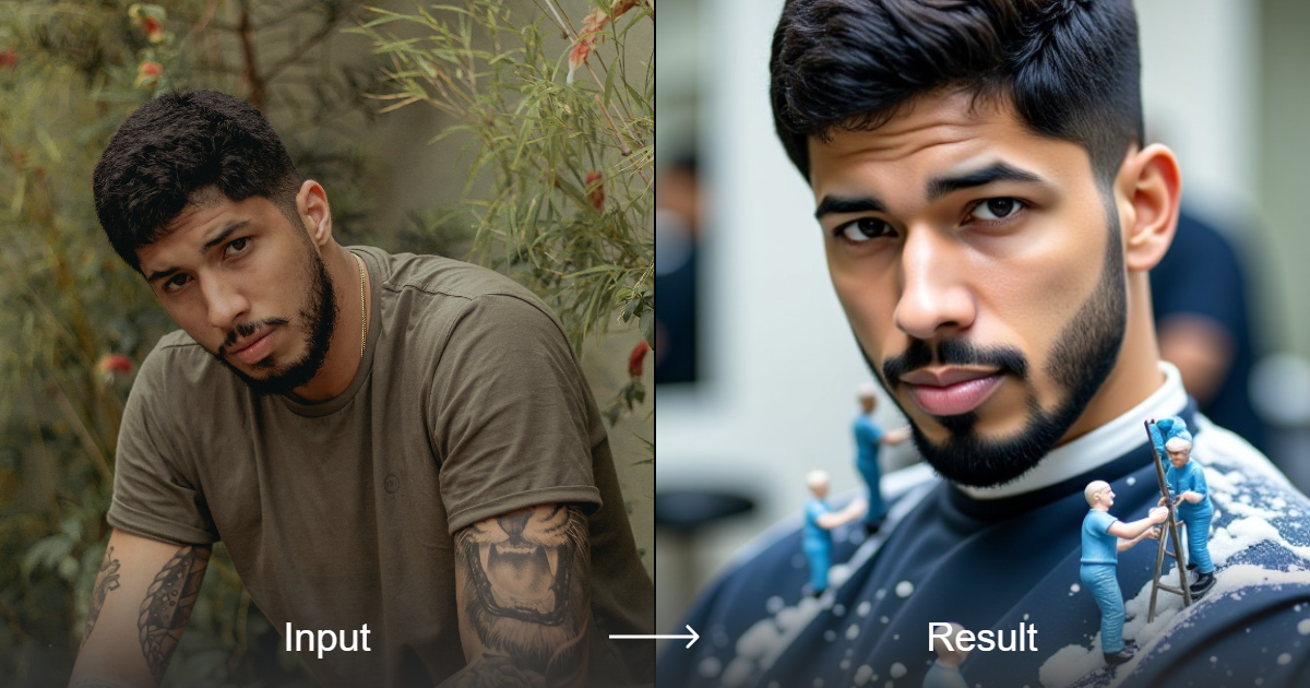 قم بتحويل النماذج الأساسية إلى صور واقعية أو فوتوغرافية لمحلات الحلاقة مع تسريحات قابلة للتخصيص، تتضمن مكونات أسلوب قابلة للتعديل والدمج.