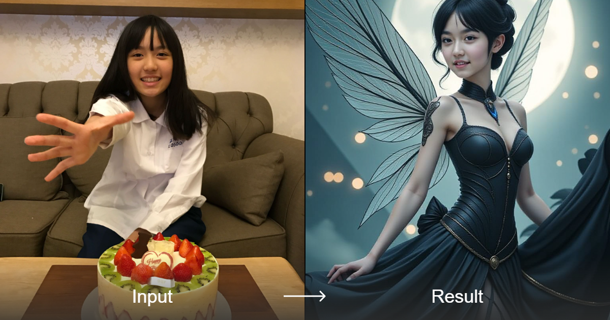 Transform your ideas into breathtaking art by using the "The Youngest Obsidian Fairy" style converter from A1.Art.