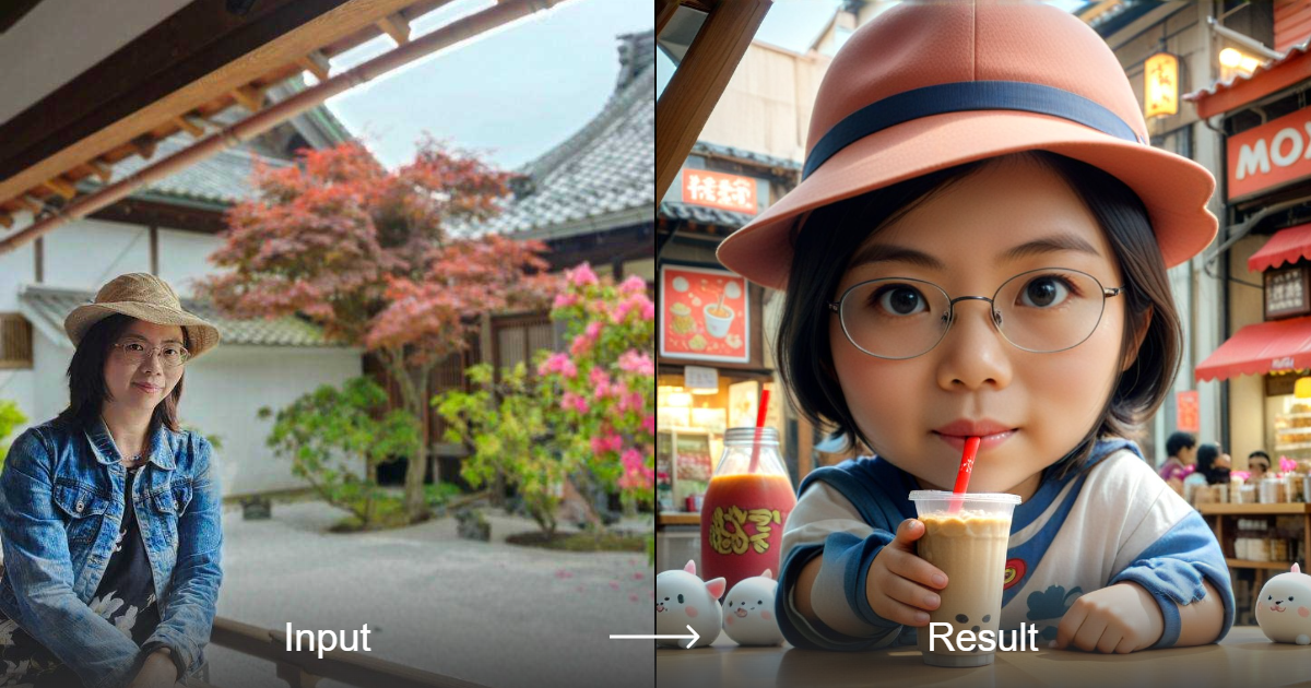 إنشاء صور فنية ثلاثية الأبعاد مُصَمَّمة بأسلوب "بوبيل تي فورك" تحتوي على عناصر مثل المرح، والمواد، والعينين الكبيرتين.