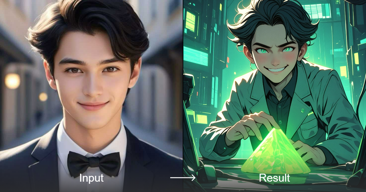 Transform your images into a mysterious anime character studying a futuristic zongzi at a cyberpunk lab, blending traditional Chinese culture with sci-fi aesthetics.
