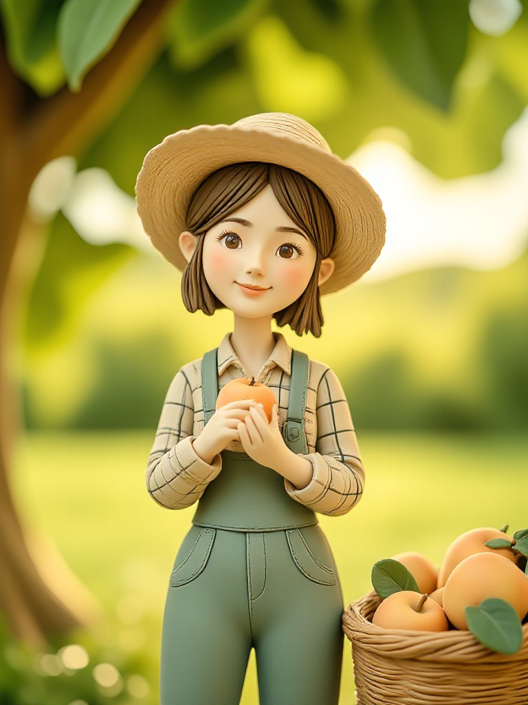 تحت شجرة الفاكهة - شخصية تصميم ميني 3D يدوية الصنع من الطين صاحب مهنة تحويل الفن | a1.art