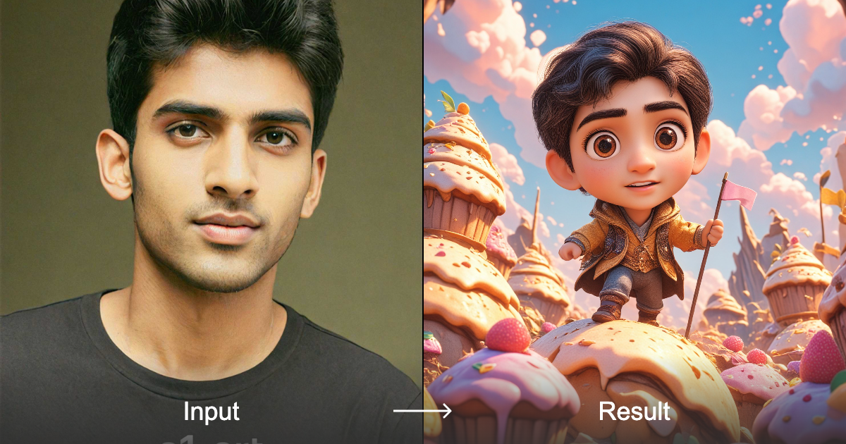 حوّل فنك إلى عالم كرتون ثلاثي الأبعاد خيالي باستخدام محوّلنا بأسلوب "فاتح تلال الكاب كيك"، والذي يقدّم شخصية لطيفة على شكل تشيبى تتسلّق تلال الكاب كيك الملوّنة.