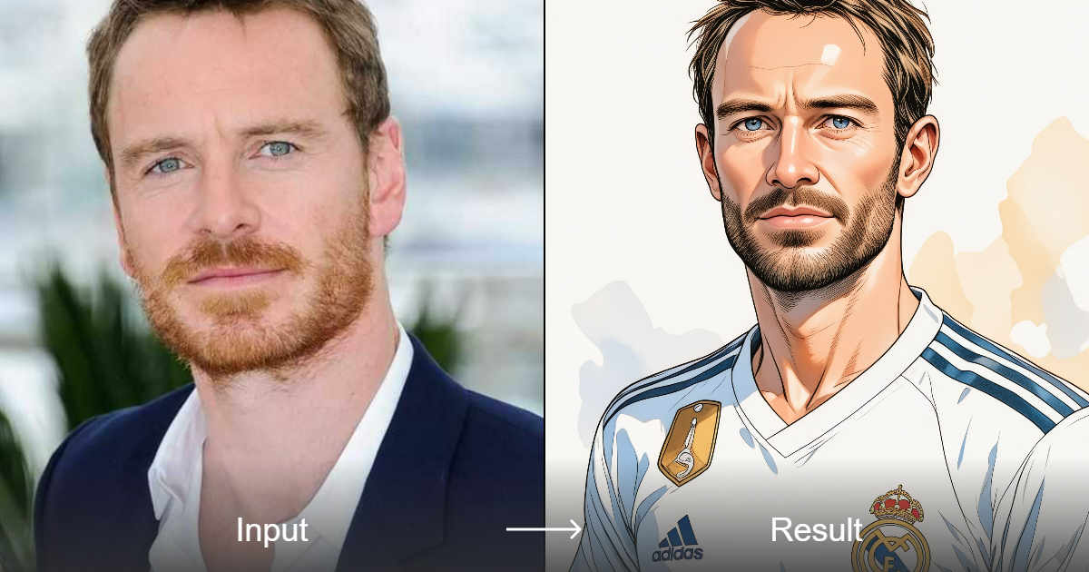 Transform your photos into stunning anime-style illustrations featuring Real Madrid's classic jersey with 8K ultra-clear quality.
