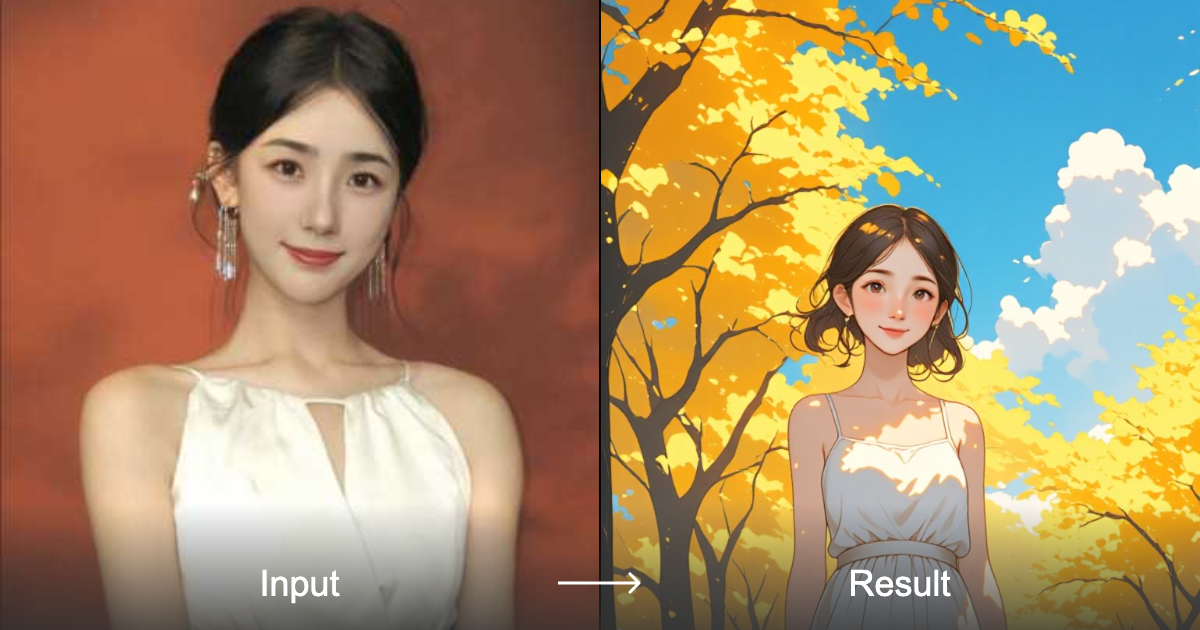 "Transform your images into stunning anime-style art featuring girls from Japanese comics and Niji Journey with the Silver Ginkgo Leaves style converter!"