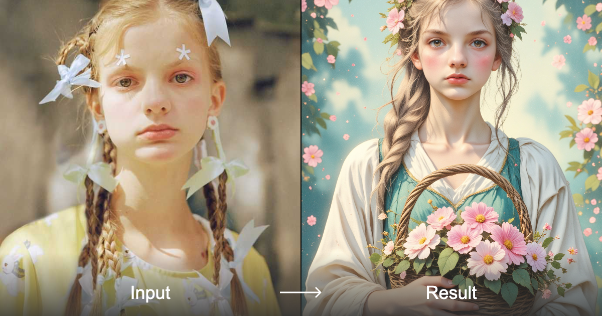 قم بتحويل صورك إلى صور رائعة بأسلوب CG 1.0 مع سلة زهور، مع تحويلات عالية الجودة على الطراز الكلاسيكي.