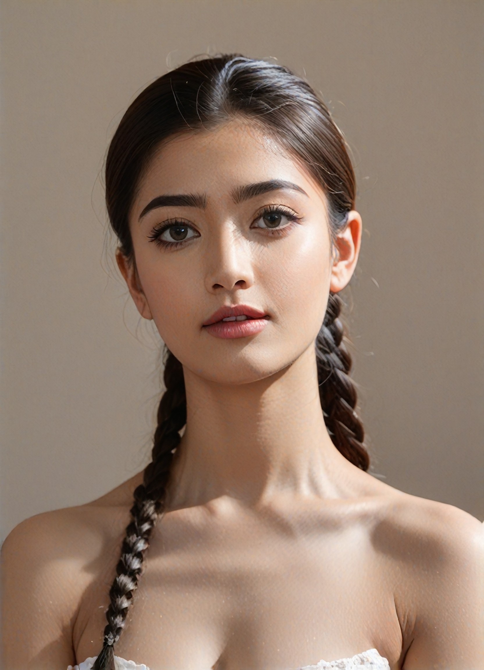 جرّب أفضل ما في التصوير الفوتوغرافي الواقعية بأسلوب البورتريه باستخدام أداة تجربة الشعر الأسود المحصول عليه من Virtual Plaits. شخص واحد، منفرد، نصف علوي، (شعر أسود محصور) +10، ارتِد قميصًا يتناسب مع تسريحة الشعر ولونه. أنشئ صورًا مذهلة باستخدام a1.art.