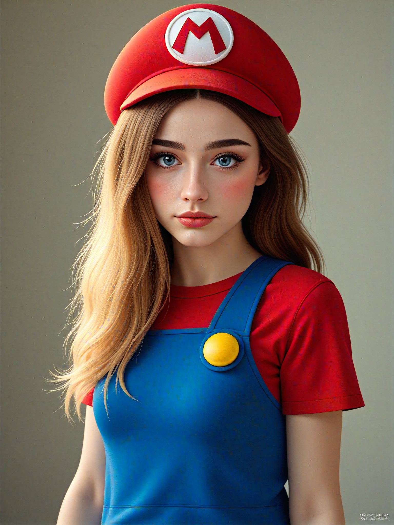 Master, Featured, Realism style AI image generator for 1 person wearing a Mario and hat top.