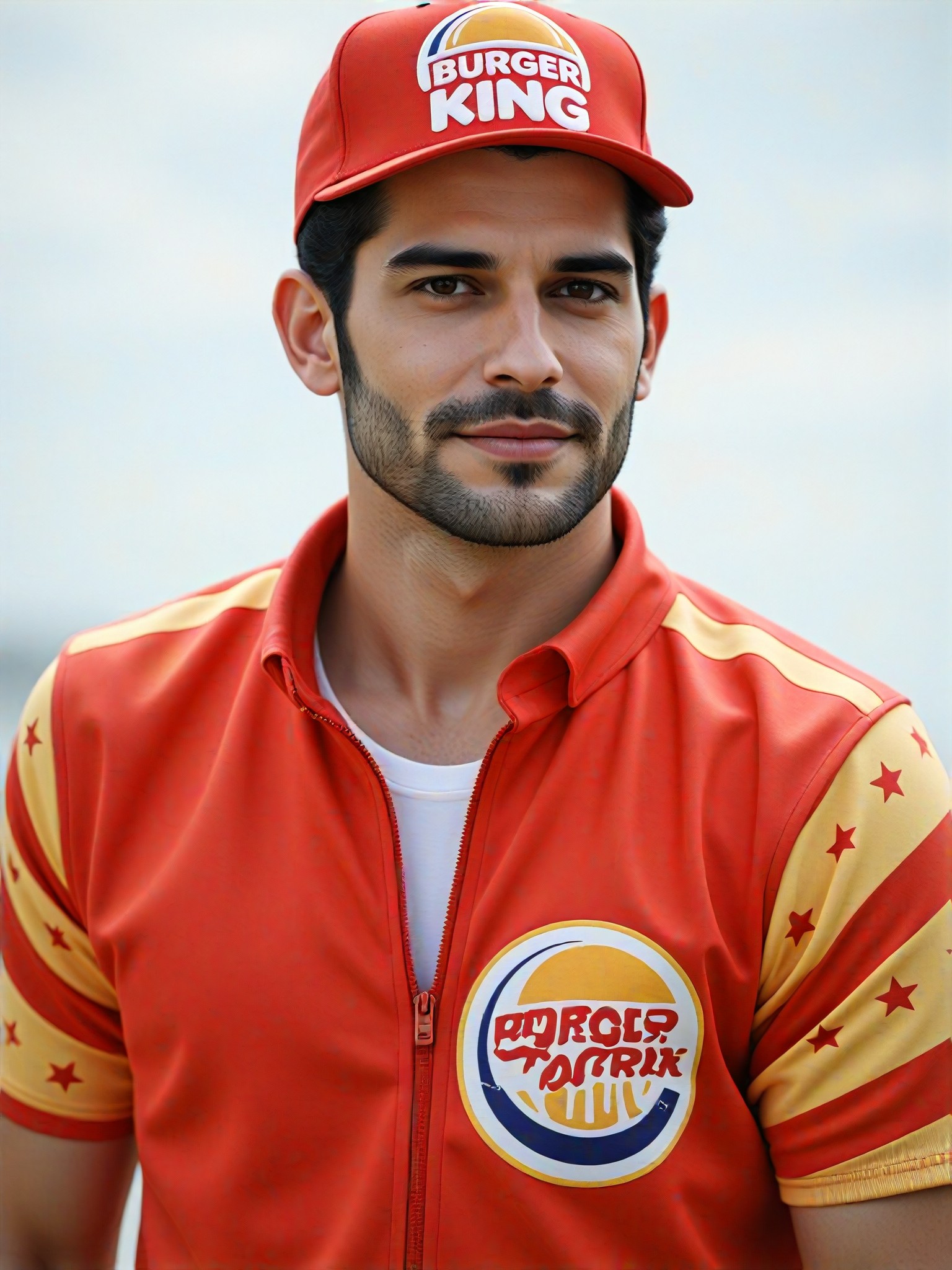 جرّب تجربة الارتداء الافتراضي النهائية مع قبعة باجر كينغ من a1.art. احصل على صورتك مُلتقطة بأسلوب واقعي باستخدام محول النمط الواقعية والماسترز.