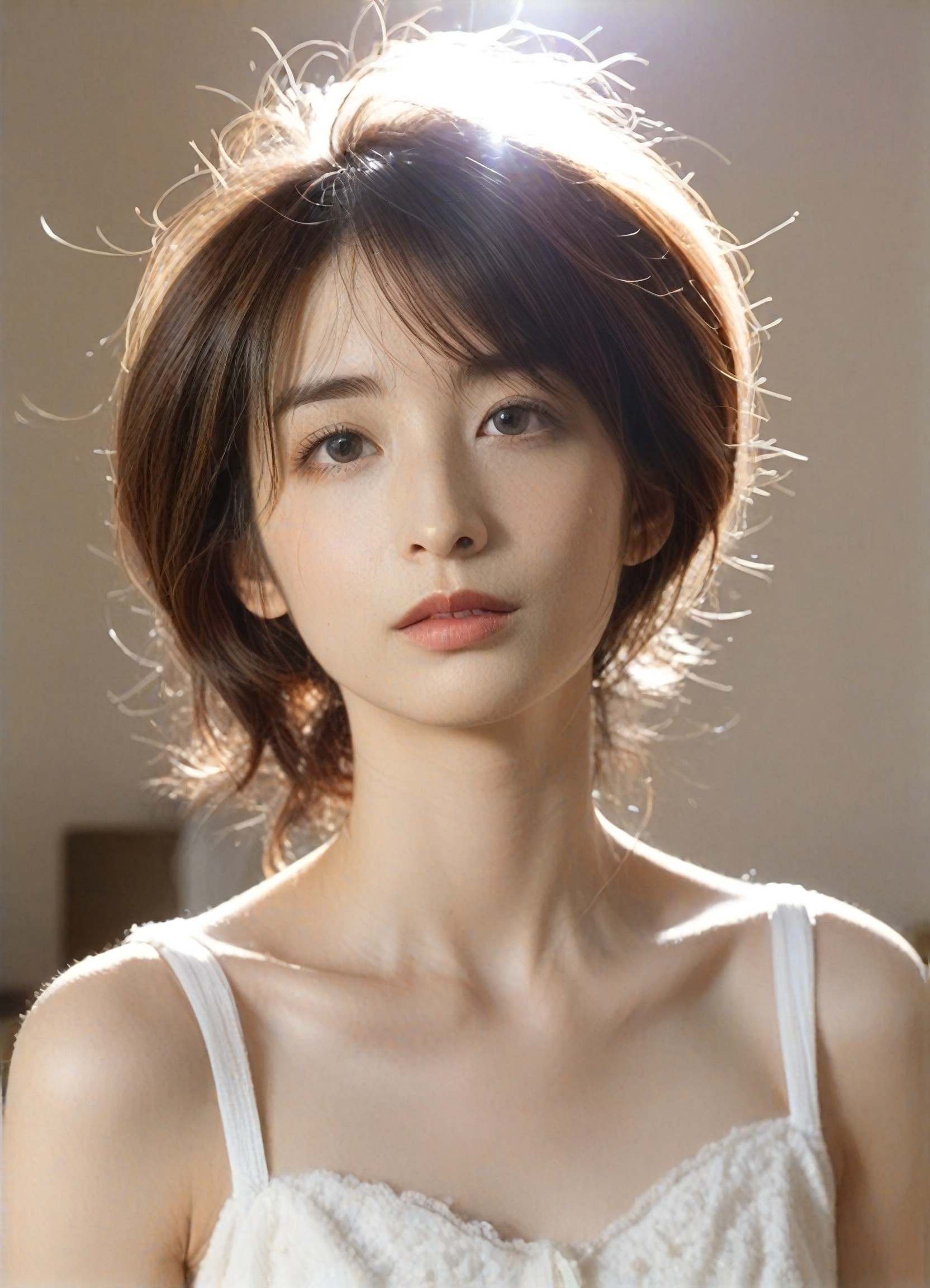 أداة تجربة الشعر الافتراضية Virtual Megalook - واقعية، تصوير فوتوغرافي للوجه، شخص واحد، منفرد، الجزء العلوي من الجسم، (شعر Megalook) +10، ارتداء قميص يناسب تسريحة الشعر ولونه | a1.art
