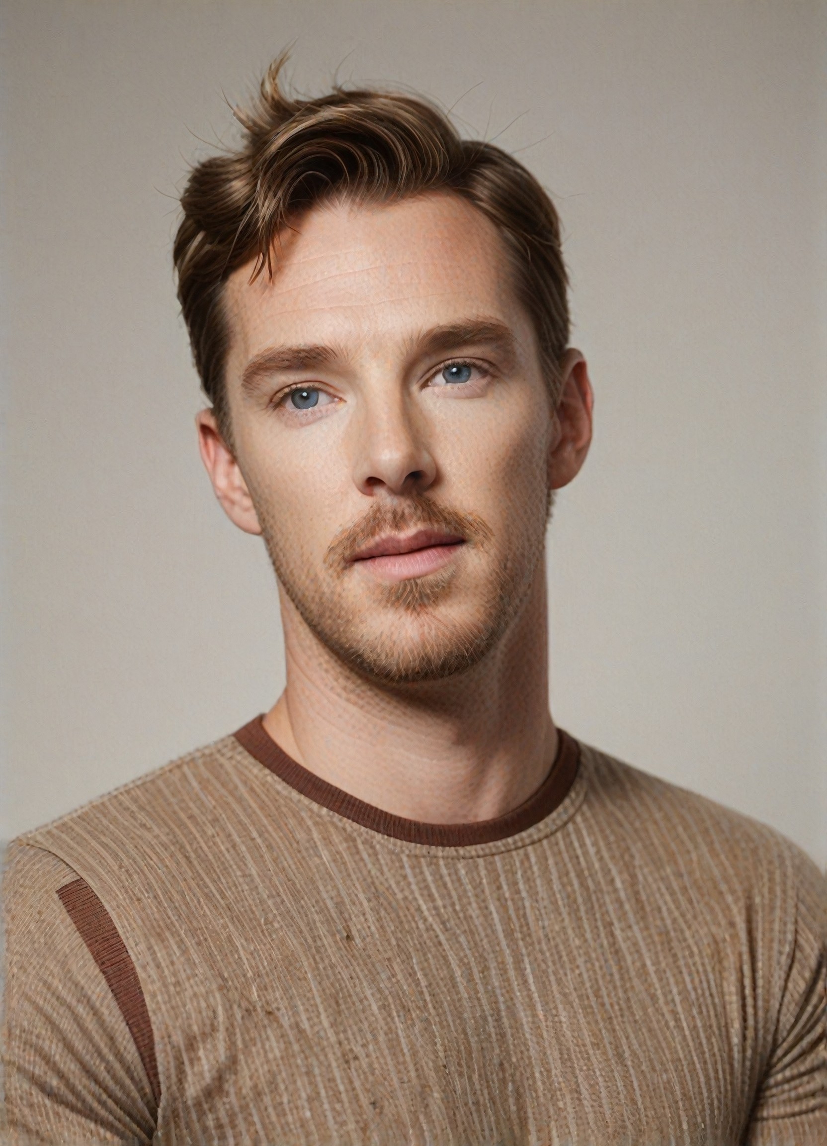 A style converter that generates realistic, portrait photography of a person wearing a top that matches the hair style and hair color. The output format includes 10 pieces of doll hair.