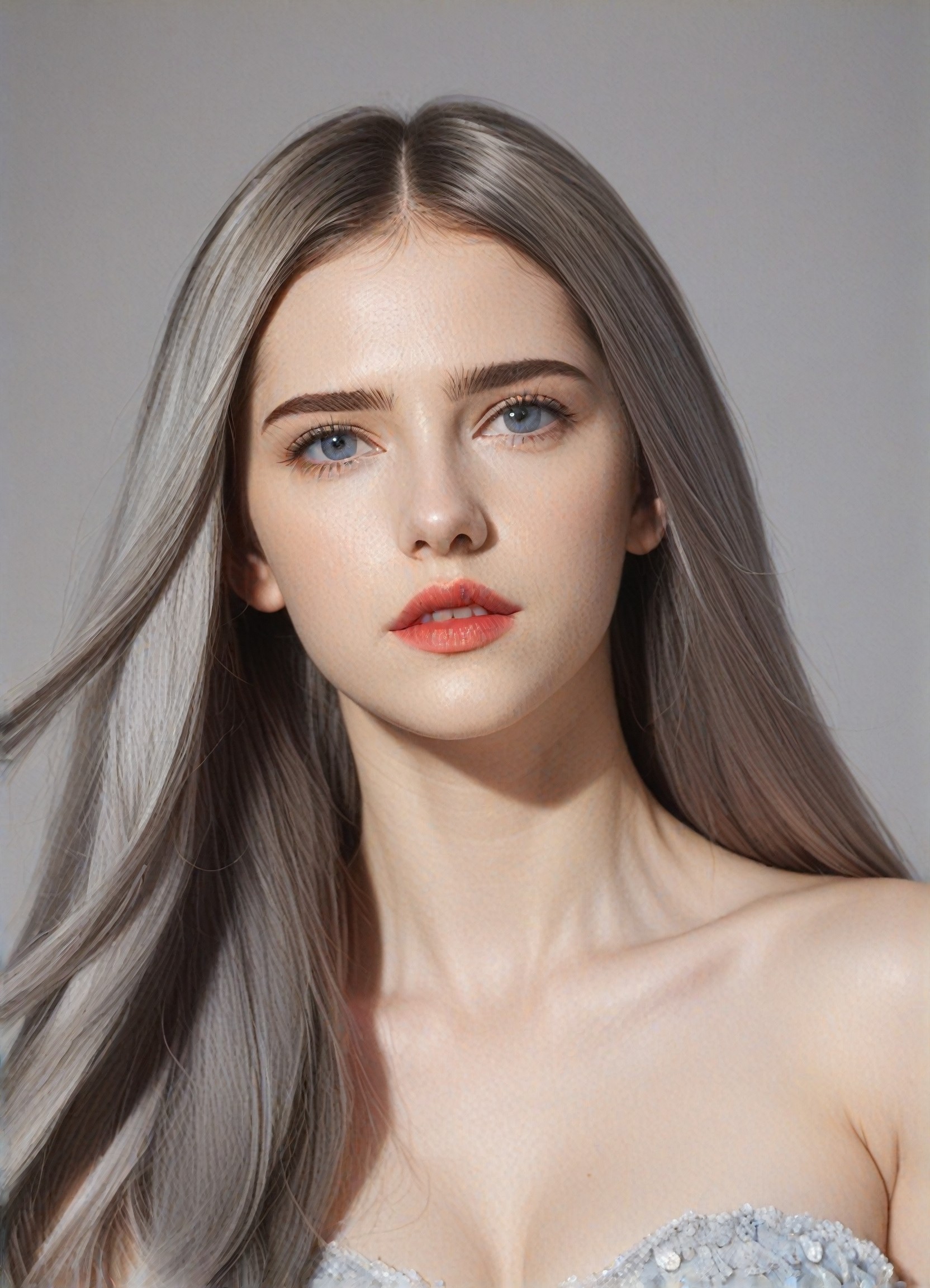 جرّب تصويرًا واقعيًا للصور الشخصية مع قمة تتماشى مع تسريحة الشعر ولونه. ارفع شعرك الطويل الرمادي إلى مستوى جديد باستخدام محوّل النمط من a1.art.
