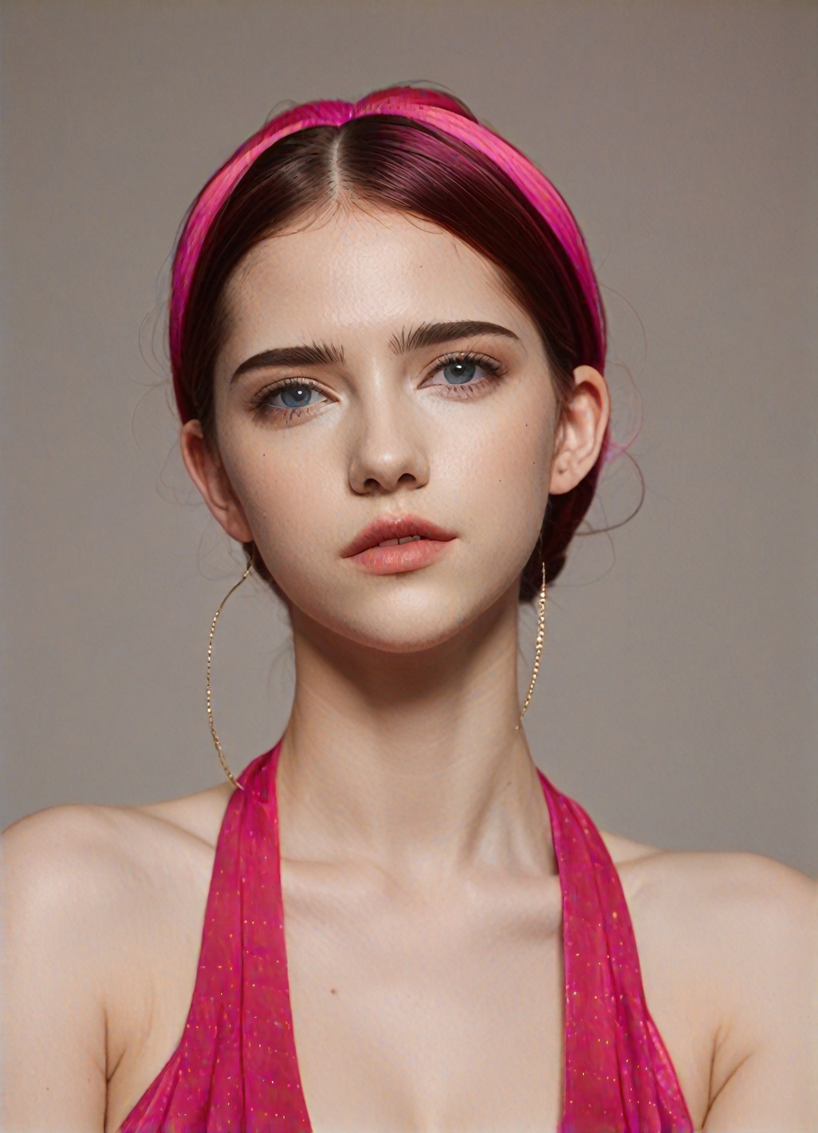 مُولِّد صور ذكاء اصطناعي قوي يمكّنك من إنشاء صور فوتوغرافية واقعية لشخص بملامح وجهه مع شعر وردي ساطع. جرب ارتداء قميصك المفضل ونسّقه مع لون الشعر لإنشاء إطلالة مذهلة.