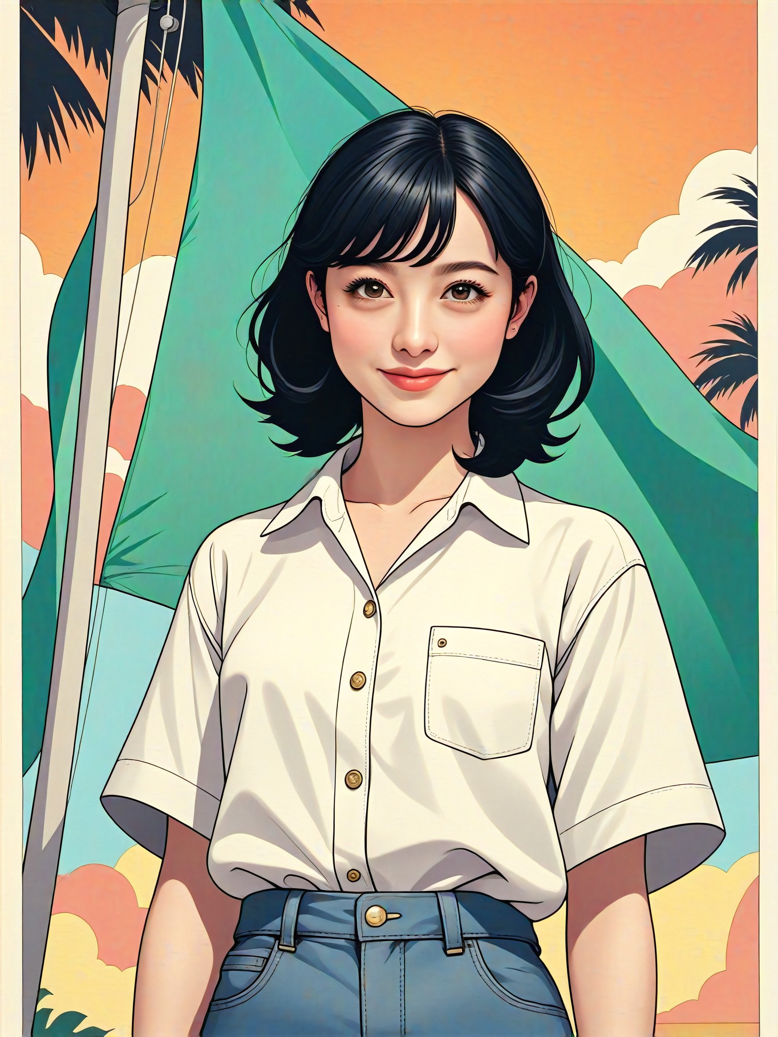 Flat Colour Anime, Whisper, Vintage landscape illustration