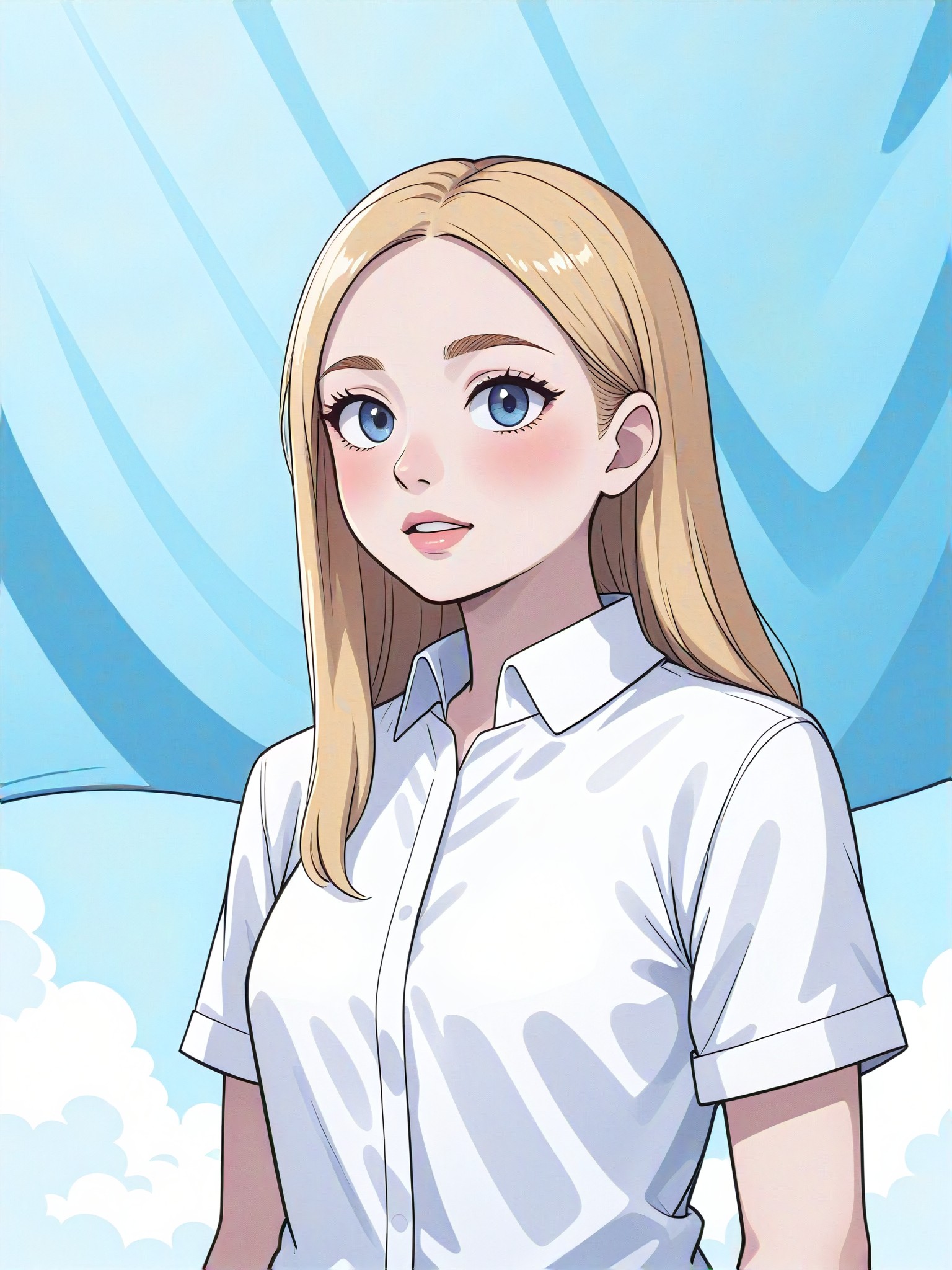 The Style Converter adds a huge awn flag to the back of a person wearing a white shirt, creating an eye-catching and unique illustration or digital painting.