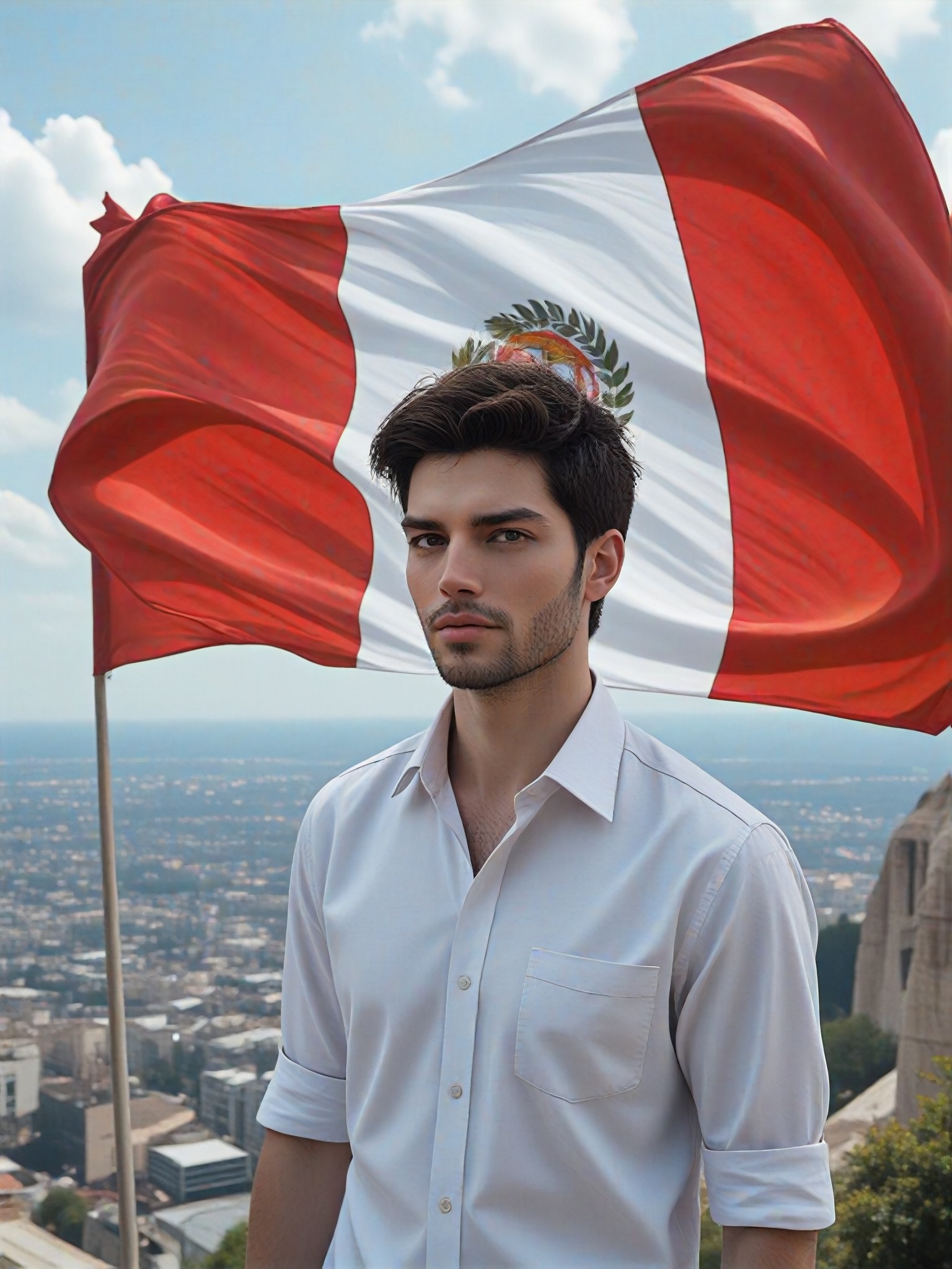 أضف علم بيرو إلى الصورة - توضيح، لوحة رقمية، محول إلى نمط CG 2.0 | a1.art