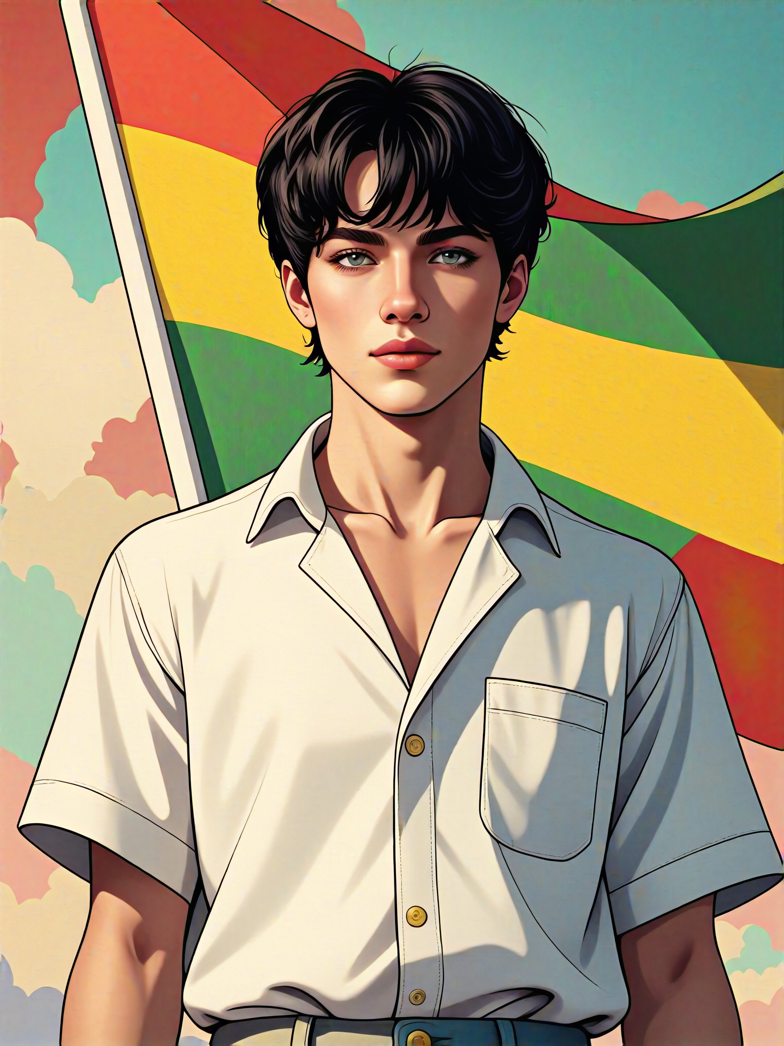 قم بتحسين صورك بعلم راستا طائر! يضيف محول النمط علمًا كبيرًا خلف شخصيتك، مما يخلق صورة ممتعة وحيوية. هذا المحول مناسب لأي مناسبة وهو بالتأكيد سيلفت الأنظار ويترك انطباعًا لا يُنسى.