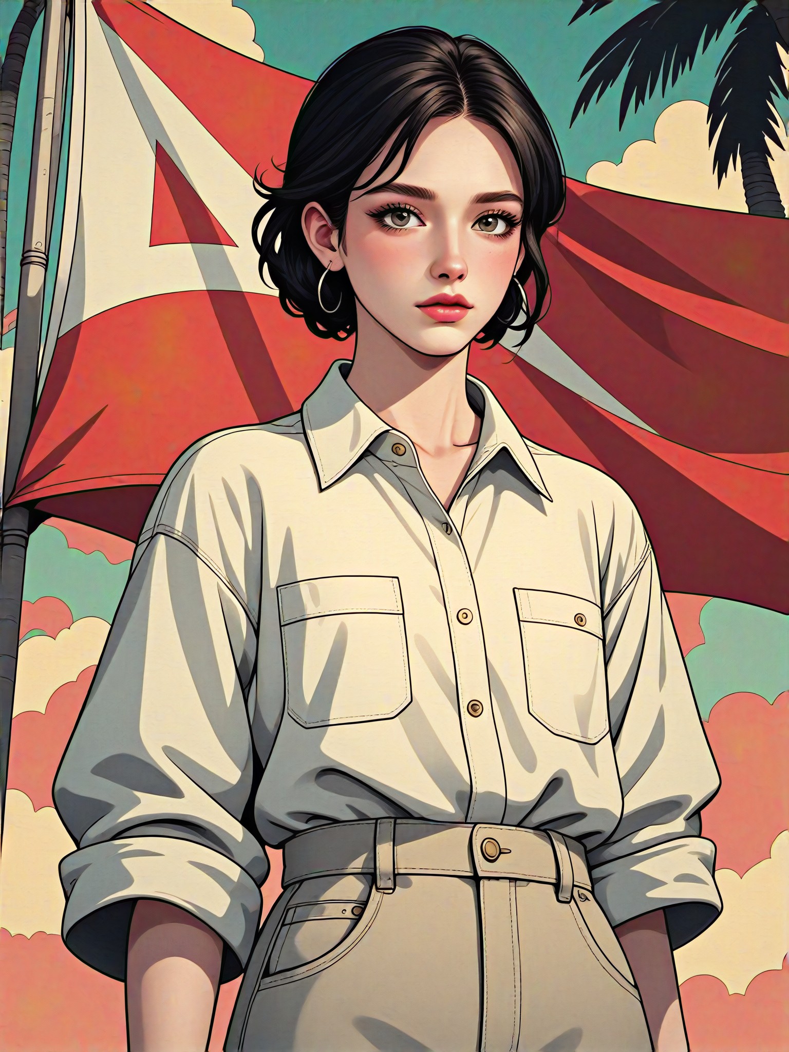 The Add Au flag to Photo style converter adds a huge au flag flying behind the figure, creating an eye-catching and unique illustration, digital painting, or CG 2.0 style. The output format is versatile and can be used for a variety of projects.
