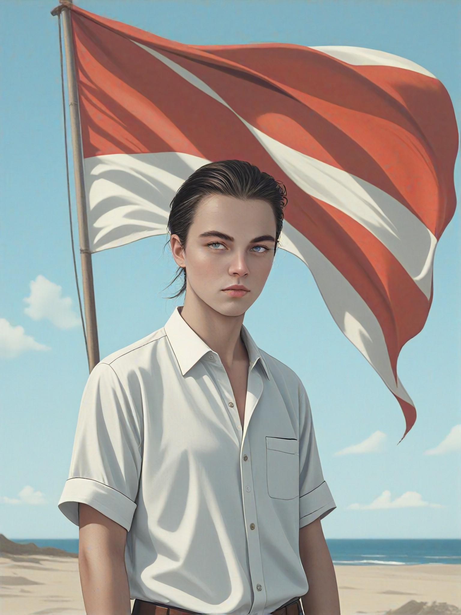 أنشئ رسومًا متحركة رائعة، وتقنّن الرسومات الحاسوبية، واللوحات الرقمية مع شخص يرتدي قميصًا أبيض وعلم ميرسميدت يرفرف خلفه.