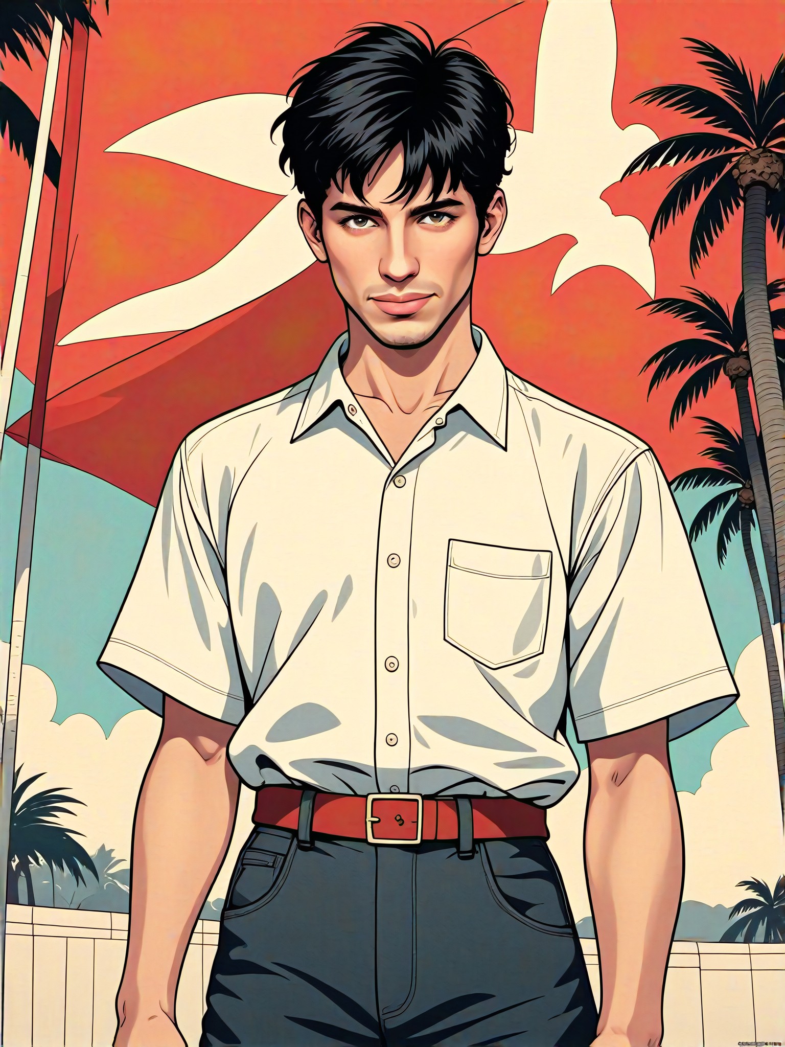 The Style Converter adds a huge Alito Wife Flag flying behind the figure in the output format of Digital Painting, Featured, Animation, and CG 2.0.