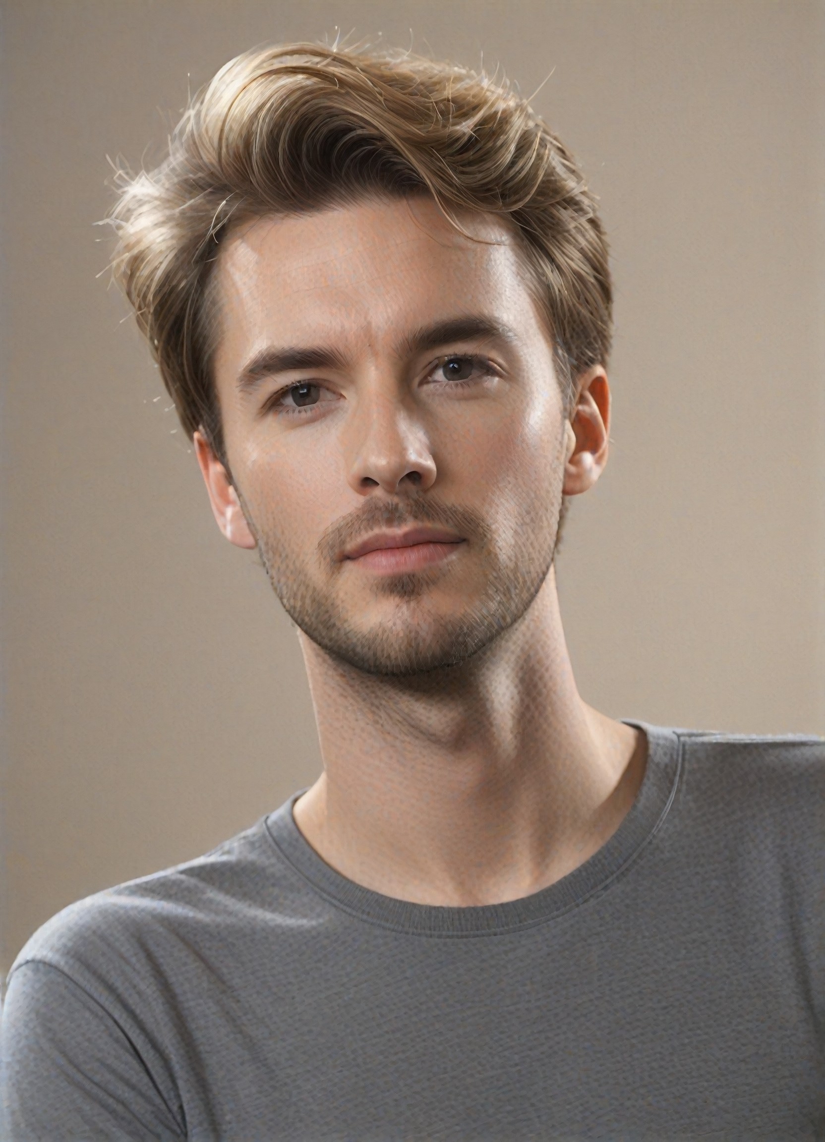 Realism, Featured, Photography style converter for portrait photography of 1 person with dirty blonde hair. The output format includes a top that matches the hair style and hair color.