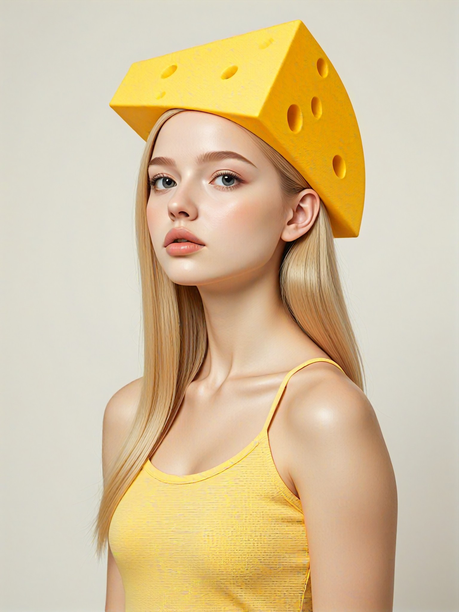تجربة افتراضية لارتداء قبعة رأس الجبن - 1 شخص، منفرد، الجزء العلوي من الجسم، يرتدي قبعة رأس الجبن + 5، ارتداء قميص يطابق أسلوب القبعة | a1.art
