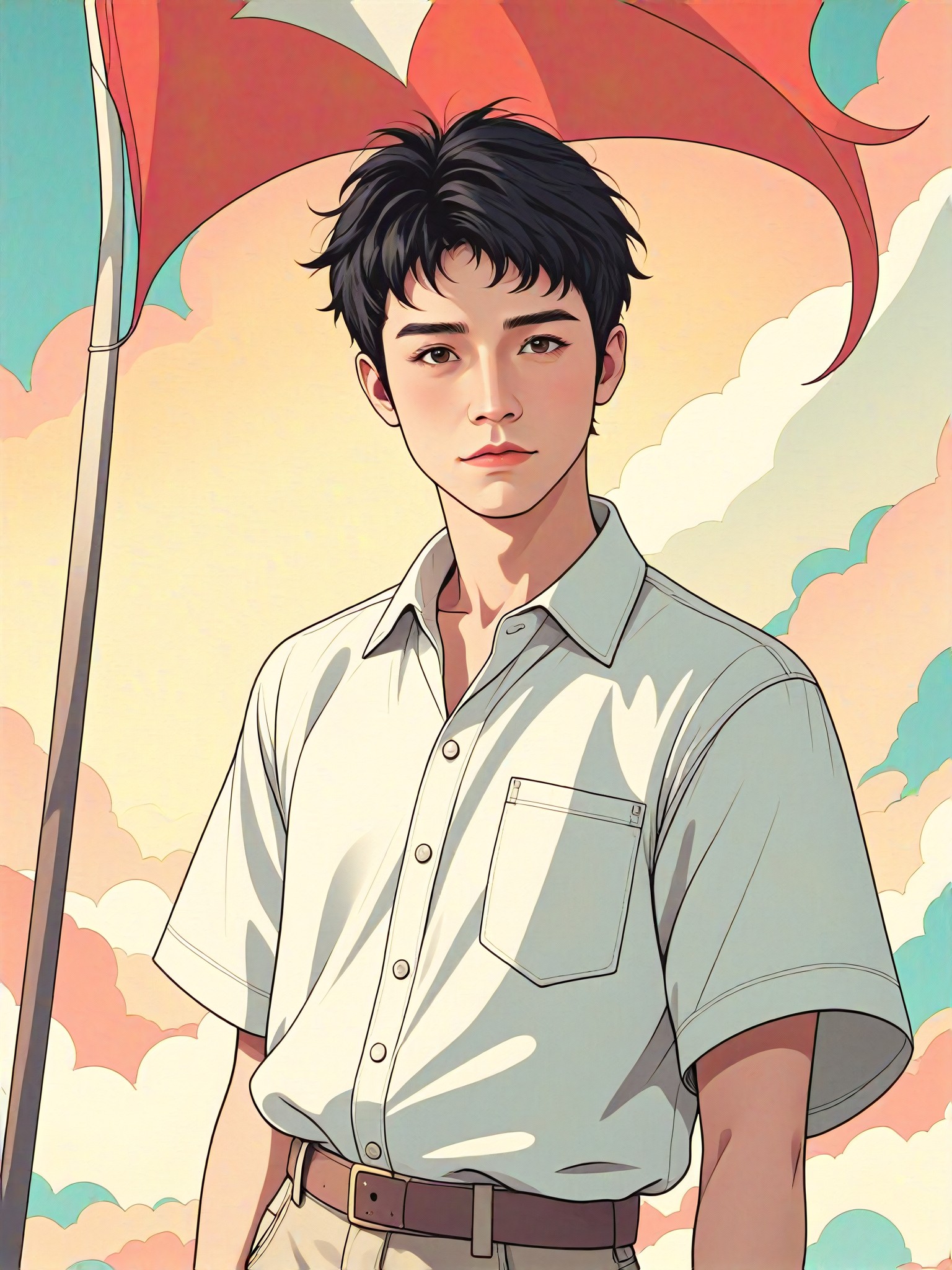 Flat Colour Anime, Whisper, Vintage landscape illustration