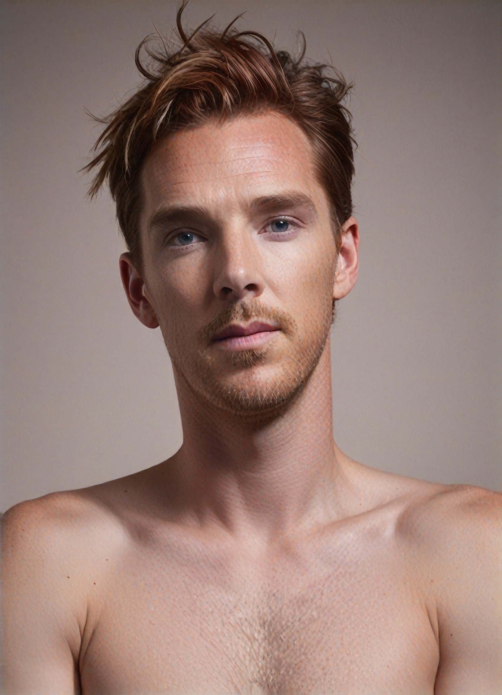 A realist, featured photography style converter for generating portrait images of a person with purple red hair. Wear a top that matches the hair style and hair color.
