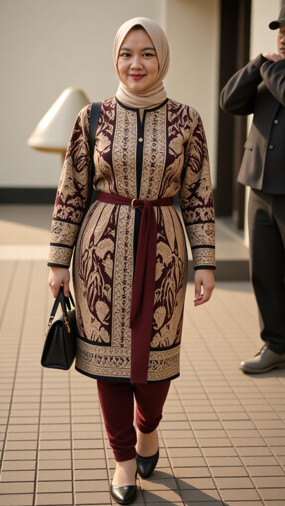 قم بتحويل صورك إلى صور مذهلة وواقعية تظهر فيها نساء مسلمات في الأربعين من عمرهن يرتدين فساتين باتيك أنيقة، مُصورة بشكل جميل باستخدام إضاءة ناعمة وتصوير احترافي.