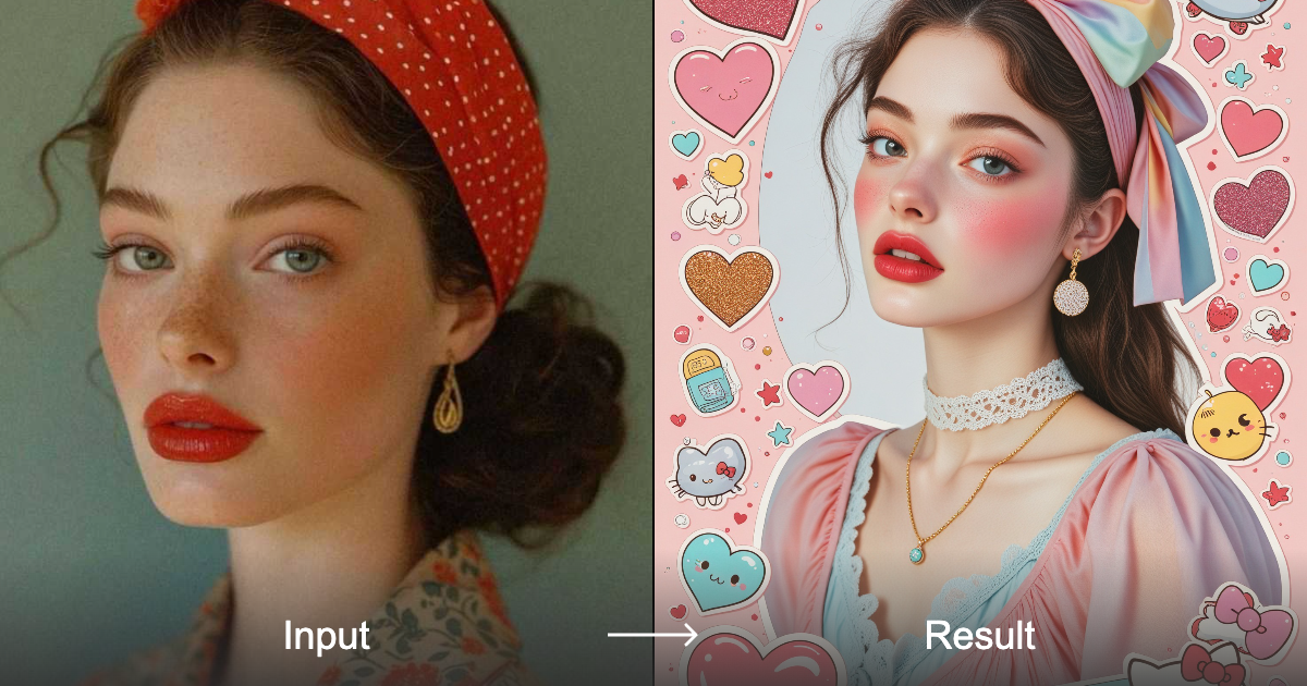 قم بتحويل صورك إلى ملصقات على طراز Y2K الكلاسيكي باستخدام محول نمط الفتيات المُجمّعة الفريد لدينا.