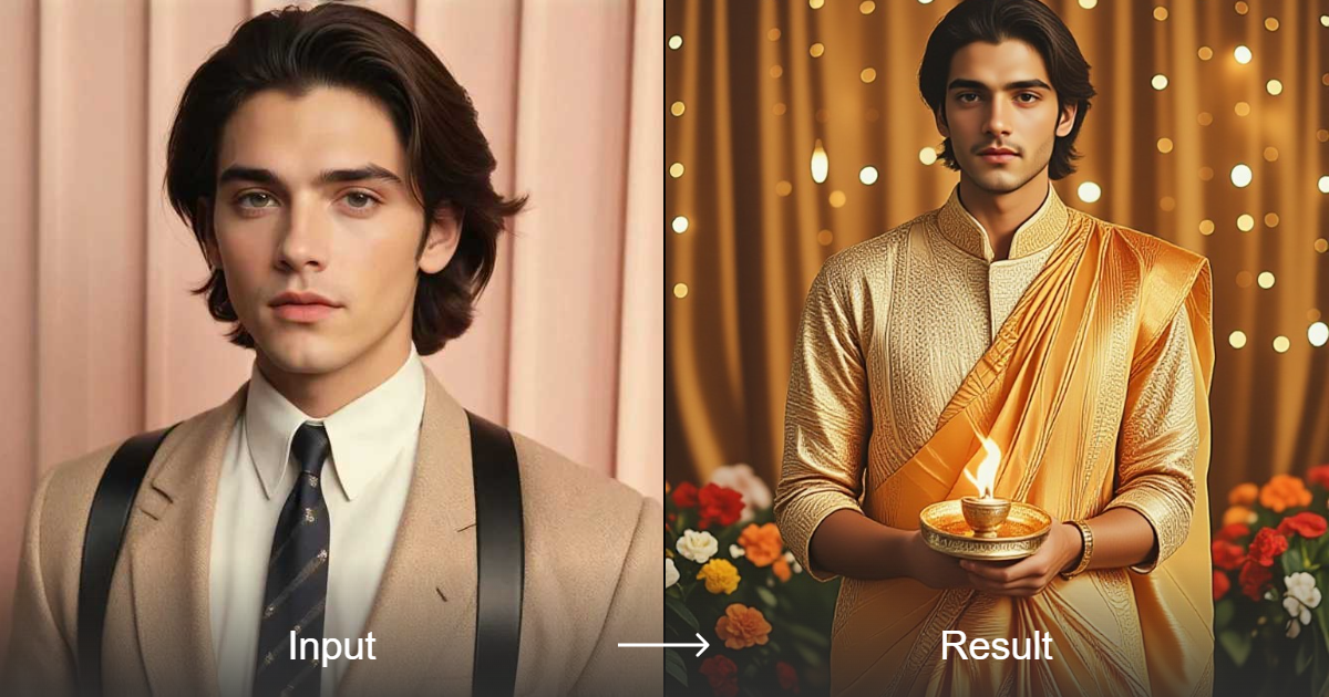 قم بإنشاء صور واقعية وفنية للرجال في مهرجان رامانافامي الهندي باستخدام محولنا بأسلوب كاميرا بولارويد، وهو مثالي لعشاق التصوير والفن.