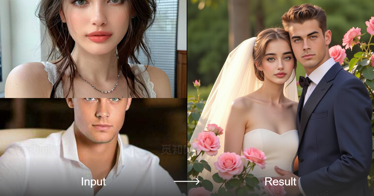 حوّل ذكريات زفافك إلى صور جماعية مذهلة وواقعية باستخدام محول نمط الزفاف المبتكر الخاص بنا. قم بتخصيص الوضعيات والإضاءة والطراز بسهولة لجعل صورك ملفتة!