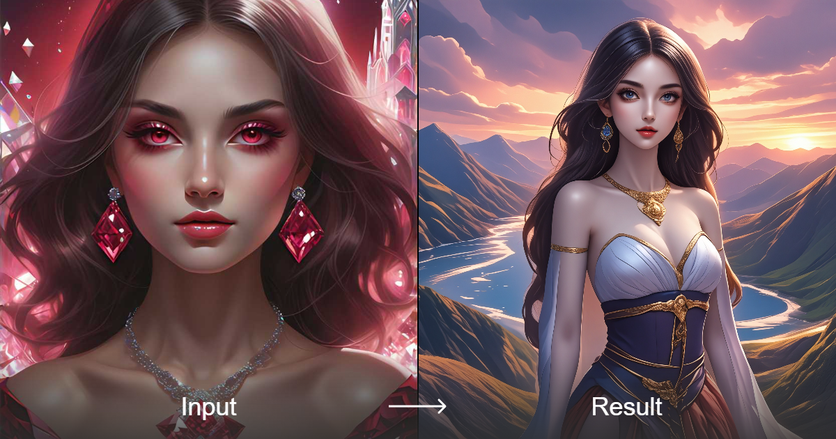 Transform your art with the "Mountains and Rivers with You" style converter, featuring a blend of woman, animation, character, female, and girls in CG 2.0.