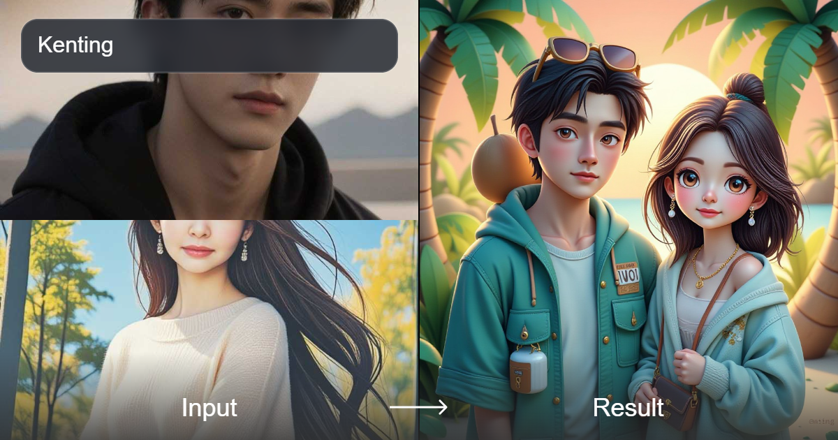 جرب محول النمط الابتكاري a1.art "معًا على الشاطئ"، لإنشاء تصميمات دمى 3D صندوق كرتونية متحركة بأسلوب تشيبى لطيف، ومشاهد كرتونية رائعة، وصور مجموعات بأسلوب الحلوى.