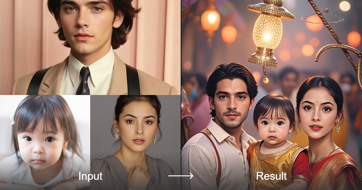 إنشاء صورة عائلية لمهرجان رامانافامي الهندي بأسلوب رقمي رجعي Y2K | a1.art