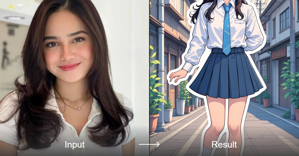 Transform your school uniform photos into vibrant, retro-styled stickers with our Y2K-inspired image generator. Perfect for fans of anime, manga, and digital art.