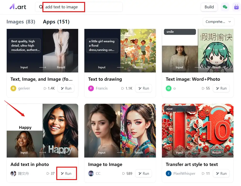 Open a1.art, choose the App that you are interested in, then click 「Run」