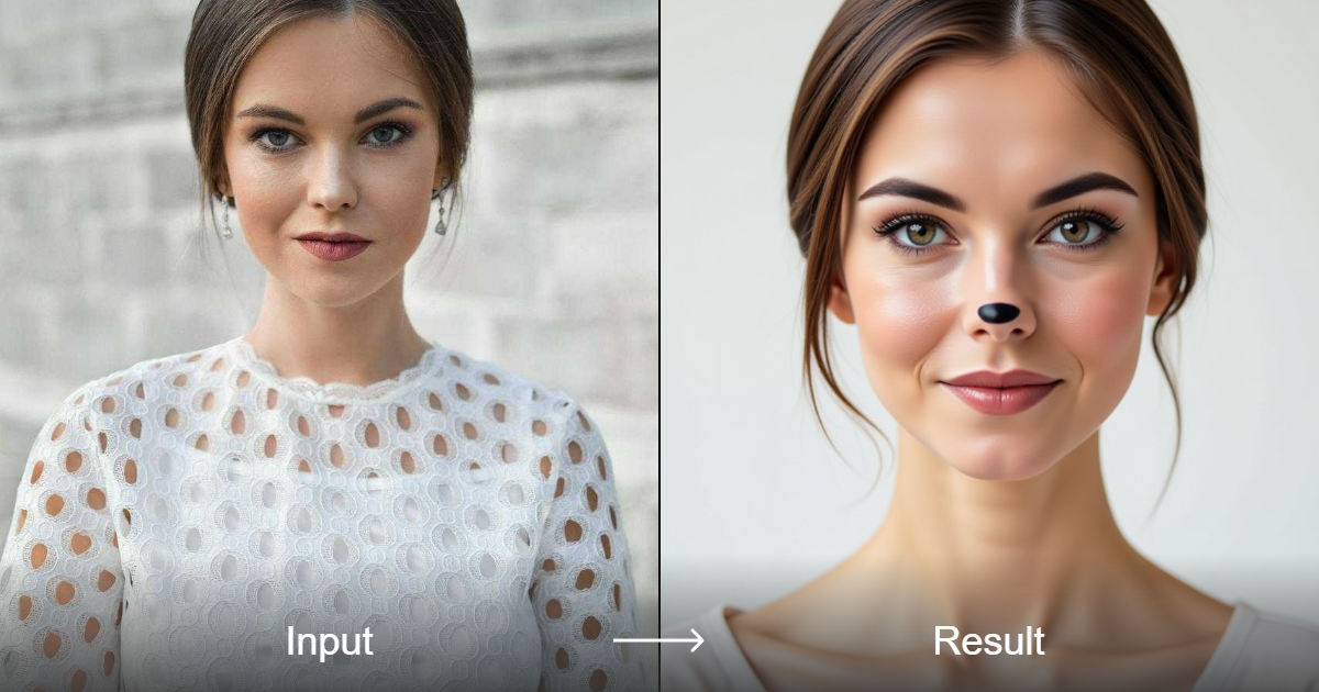 Transform your selfies with the Soft Dog Nose filter on a1.art. Achieve a gentle, natural dog nose effect blended with subtle beauty filters for a clean, social-ready look.