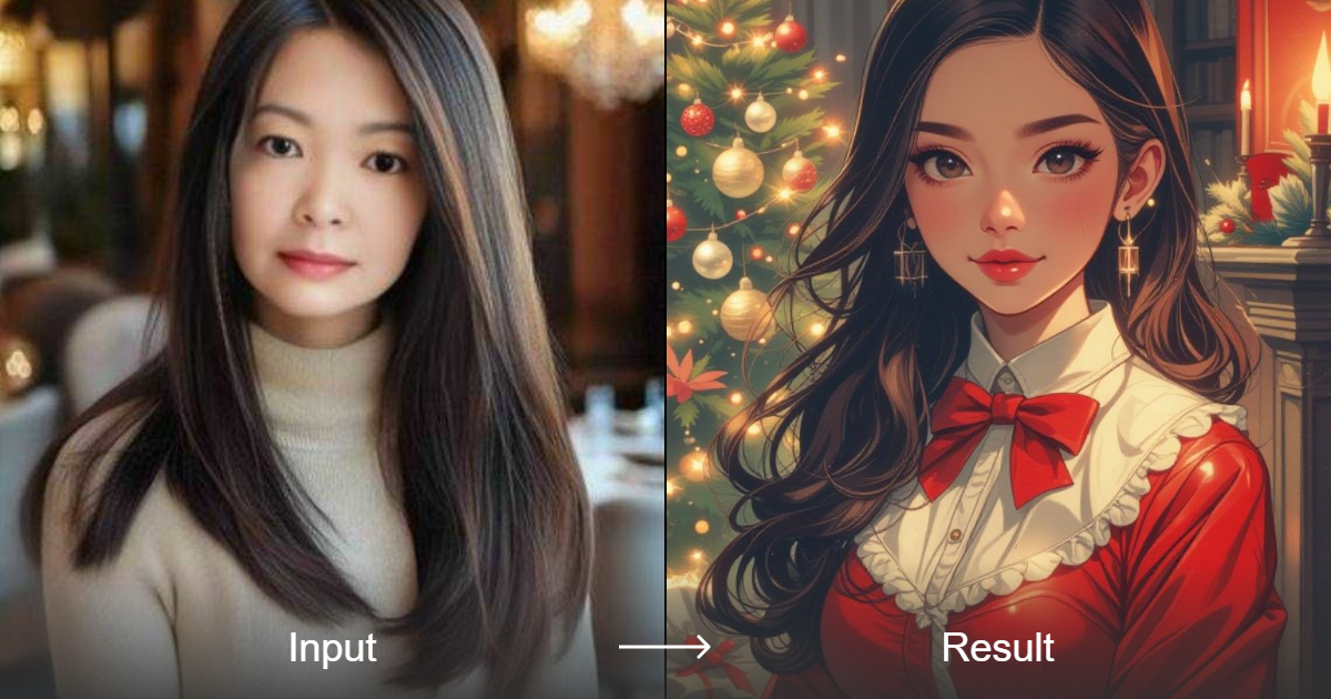 Erstellen Sie mit dem Stilwandler "Weihnachts-Animé-Schönheit" wunderschöne Animé-Bilder mit einem festlichen Weihnachtsmotiv. Personalisieren Sie Ihren Avatar, das Überraschungsfilter oder die Feier mit der Meisterhand. Erleben Sie die Kunst der Weihnachts-Animé-Schönheit.