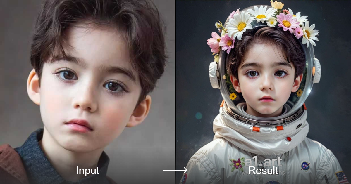 Ändere schnell deinen Foto-Stil zu lebhafter Astronautenkleidung mit a1.art. Erlebe eine kreative Transformation in Sekunden.