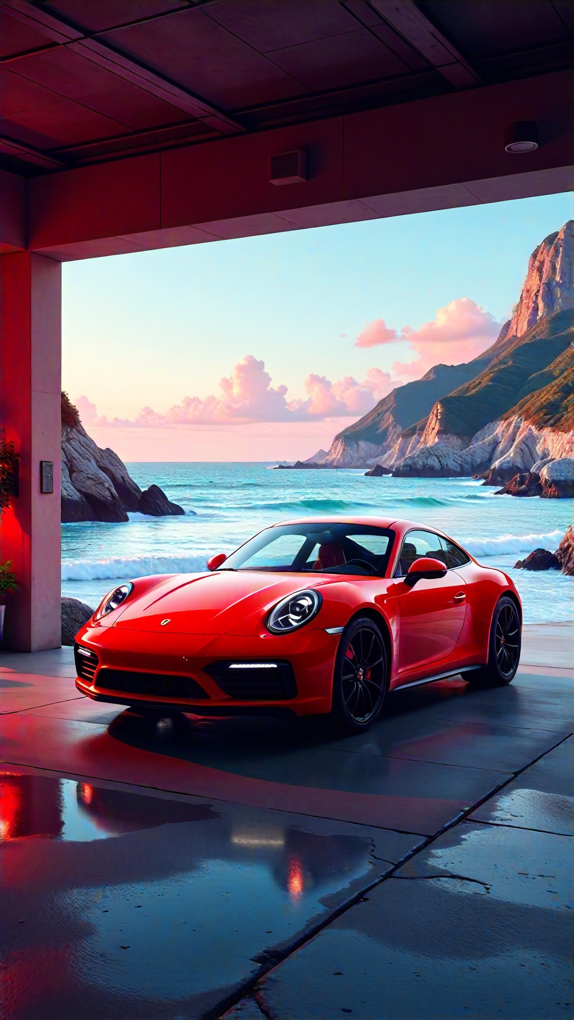 Porsche-Ozeanansicht-Garagen-Hintergrundbild-Ersteller | a1.art